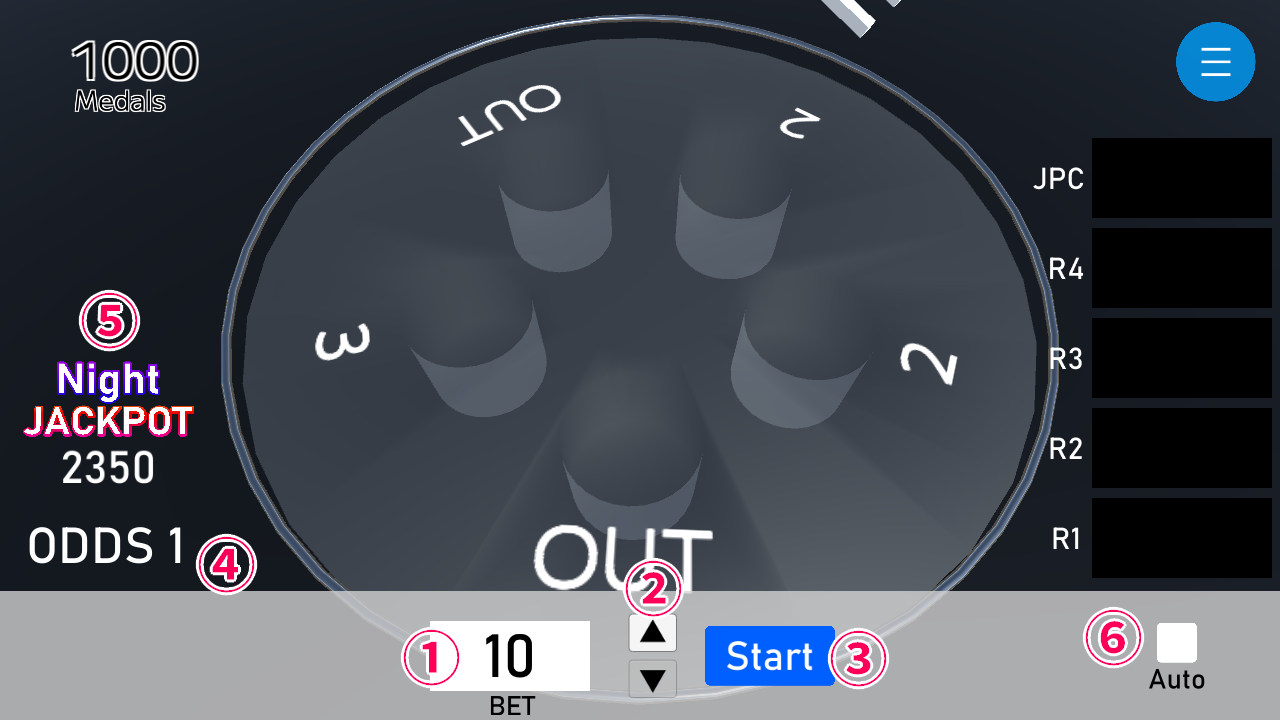 配当はルーレットBより高めで、抽選で決定したメダル配当 x 1ワープポイントBETあたり5枚のメダルがもらえます。